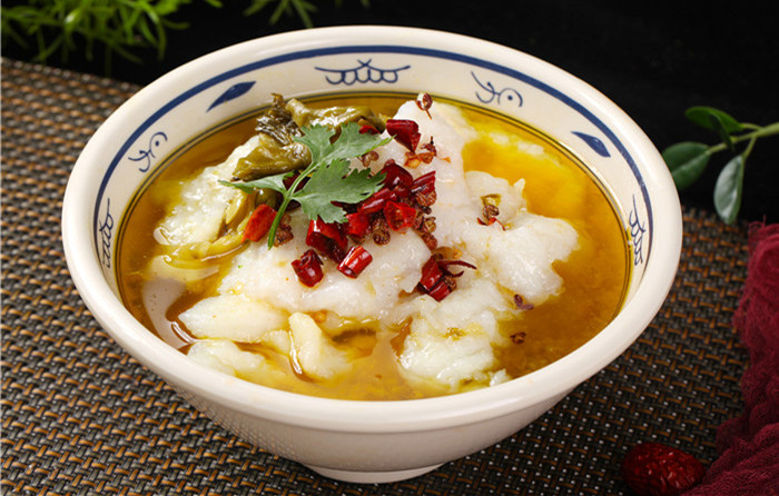 老壇酸菜湯復合調味料60克(按1:8兌 淡魚湯500克 ),酸菜佐料50克 , 鹽2克,雞精2克,料酒,蛋清、淀粉適量